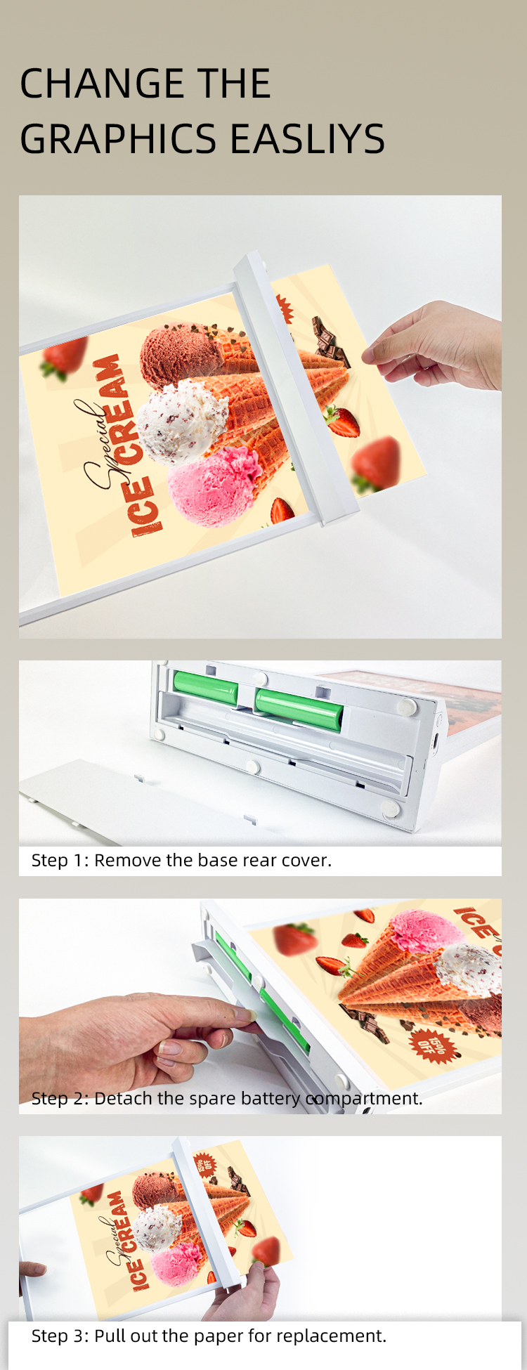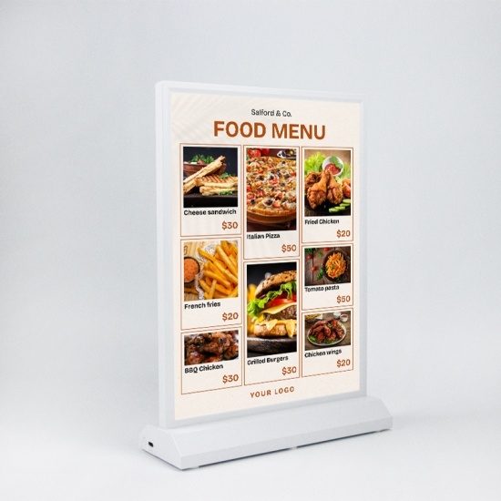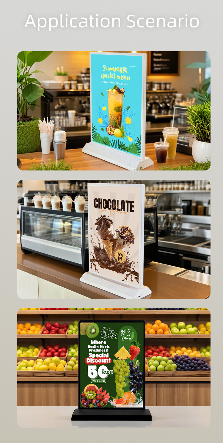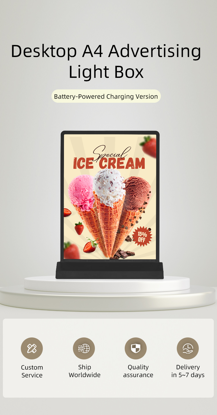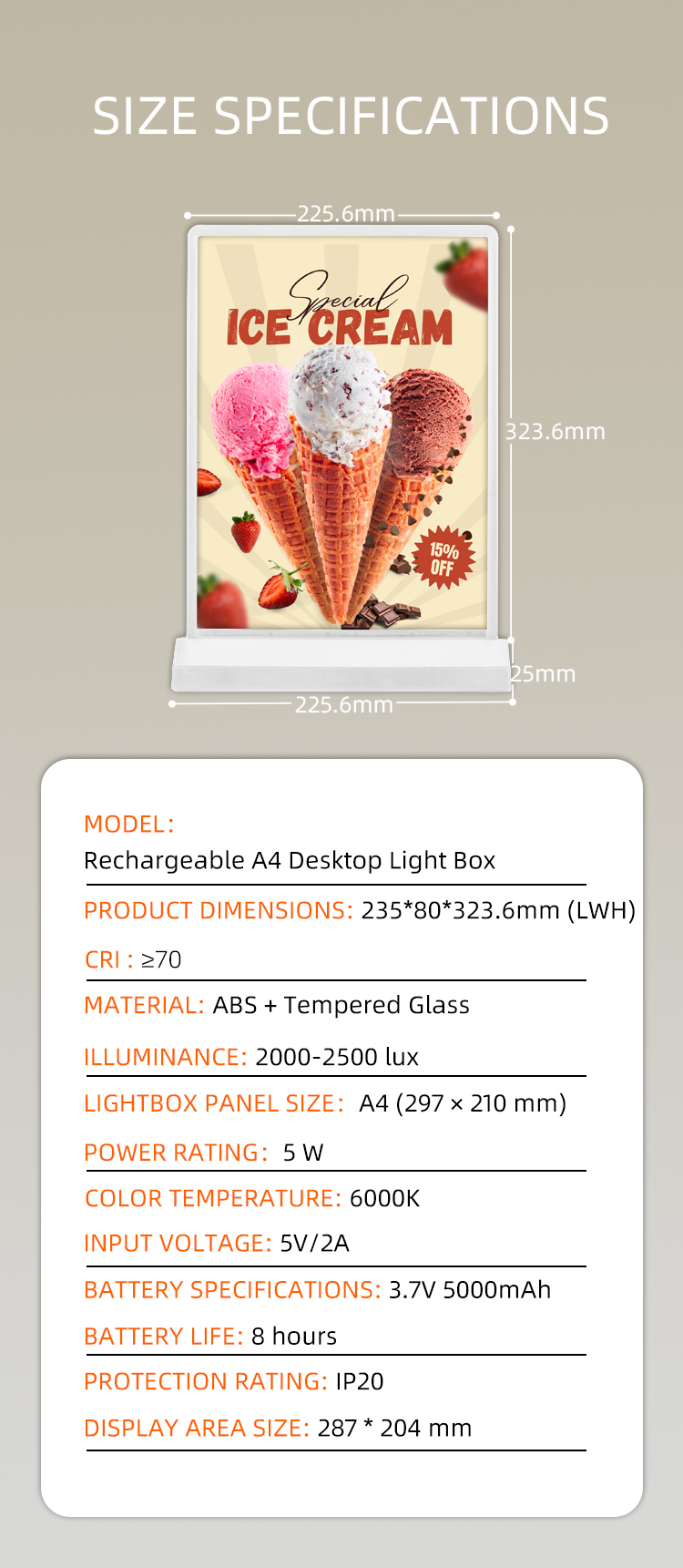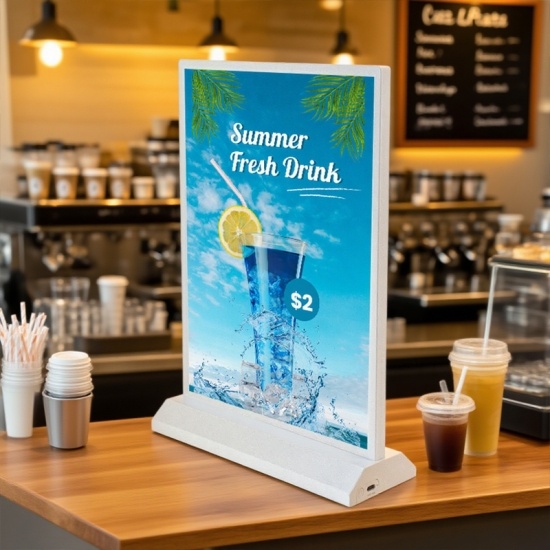 Citylux A5 Rechargeable Double-Sided Table Light Box: Features acrylic panel, tempered glass, and ABS frame. 8-hour runtime per charge, non-slip base design. Ideal for restaurant menus, cafes, and milk tea shops